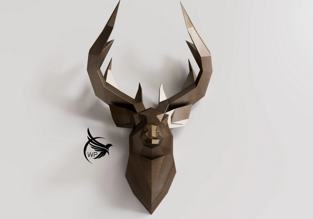 Metal Deer, Deer low Poly, PDF DXF Template, Metal Sculpture, Steel Animal, DIY, Decor for Home, Pepakura, Digital, Handmade Steel,Metal