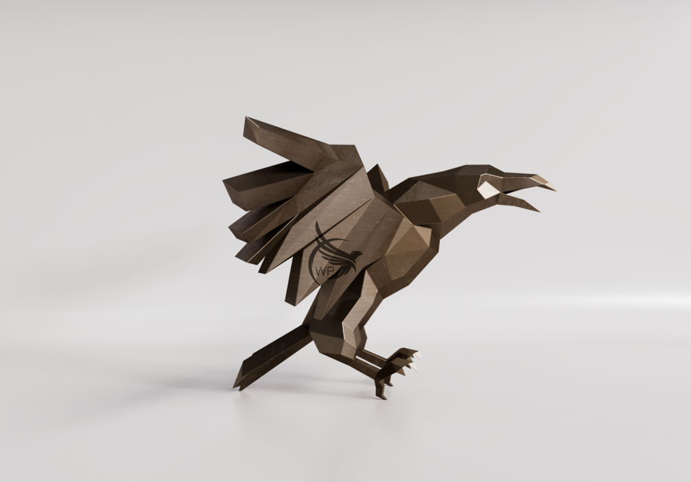 Metal Raven, Raven low Poly, PDF DXF Template, Metal Sculpture, Steel Bird, DIY, Decor for Home, Pepakura, Digital, Handmade Steel,Metal