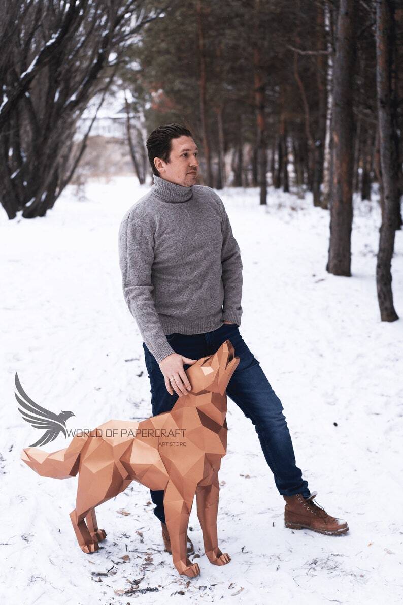 Wolf, Wolf low Poly, PDF Template, Low Poly, Paper Wolf, DIY, Gift Wall Decor for Home, Pepakura, Digital, Handmade